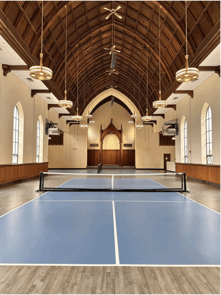 Nhà thờ Armenian Church of Our Savior ở Worcester, Massachusetts, đã cải tạo khán phòng của mình thành địa điểm chơi pickleball trong những tháng mùa đông.