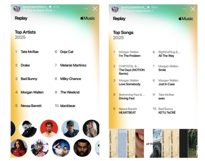 Một chuyên gia khác đã đăng tải Spotify Wrapped của cô ấy là Hurricane Tyra Black.