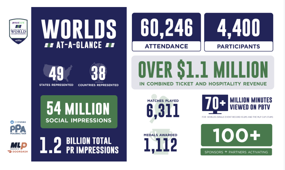 Về mặt tương tác với người hâm mộ, Pickleballtv đã đạt kỷ lục 70 triệu phút xem sự kiện và các tài khoản mạng xã hội chính thức đã tích lũy được 54 triệu lượt hiển thị. Mức độ phủ sóng truyền thông cũng tạo ra kỷ lục 1,2 tỷ lượt hiển thị tiềm năng trong nước và quốc tế.
