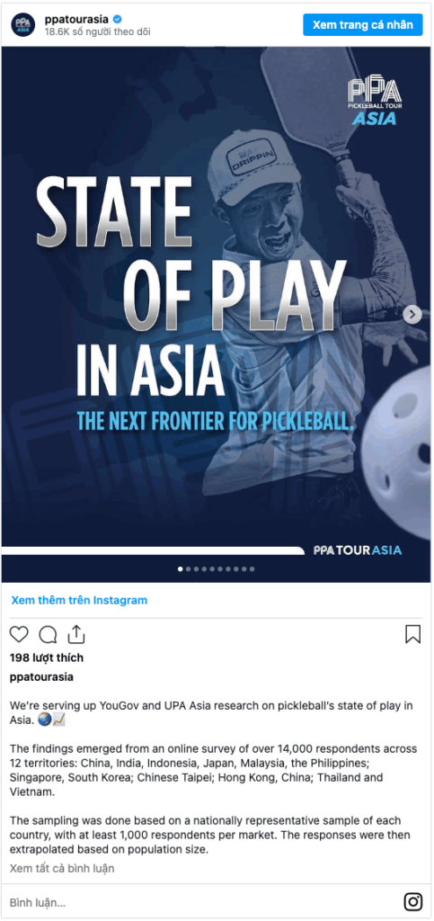 – Tốc độ tăng trưởng của pickleball tại các vùng lãnh thổ này đã tăng vọt 60% so với cùng kỳ năm trước, với 62% số người được hỏi tìm hiểu về pickleball trong vòng hai năm qua.