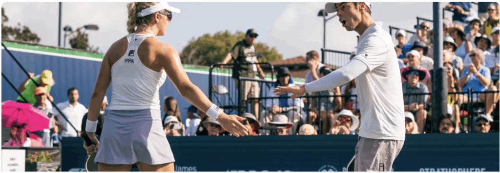 Anna Leigh Waters and Ben Johns celebrating a point in the mixed doubles final at the Veolia Lakeland Open presented by Six Zero. PPA Tour