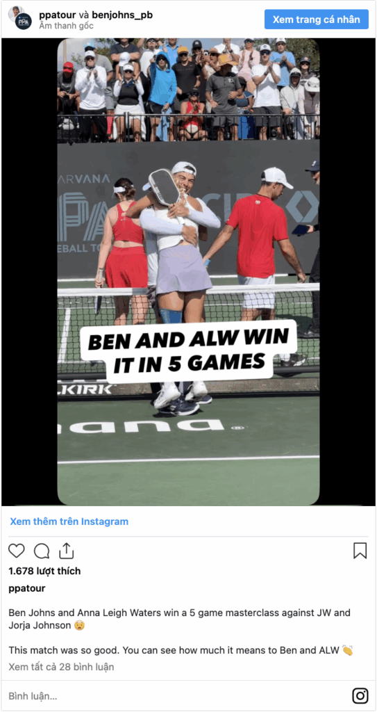 Anna Leigh Waters/Ben Johns đã mở màn giải vô địch Carvana Championship vào Chủ nhật tại Sunshine State với chiến thắng 10-12, 11-4, 11-2, 8-11, 11-7 trước hạt giống số 2 Jorja Johnson/JW Johnson để giành chức vô địch đôi nam nữ.